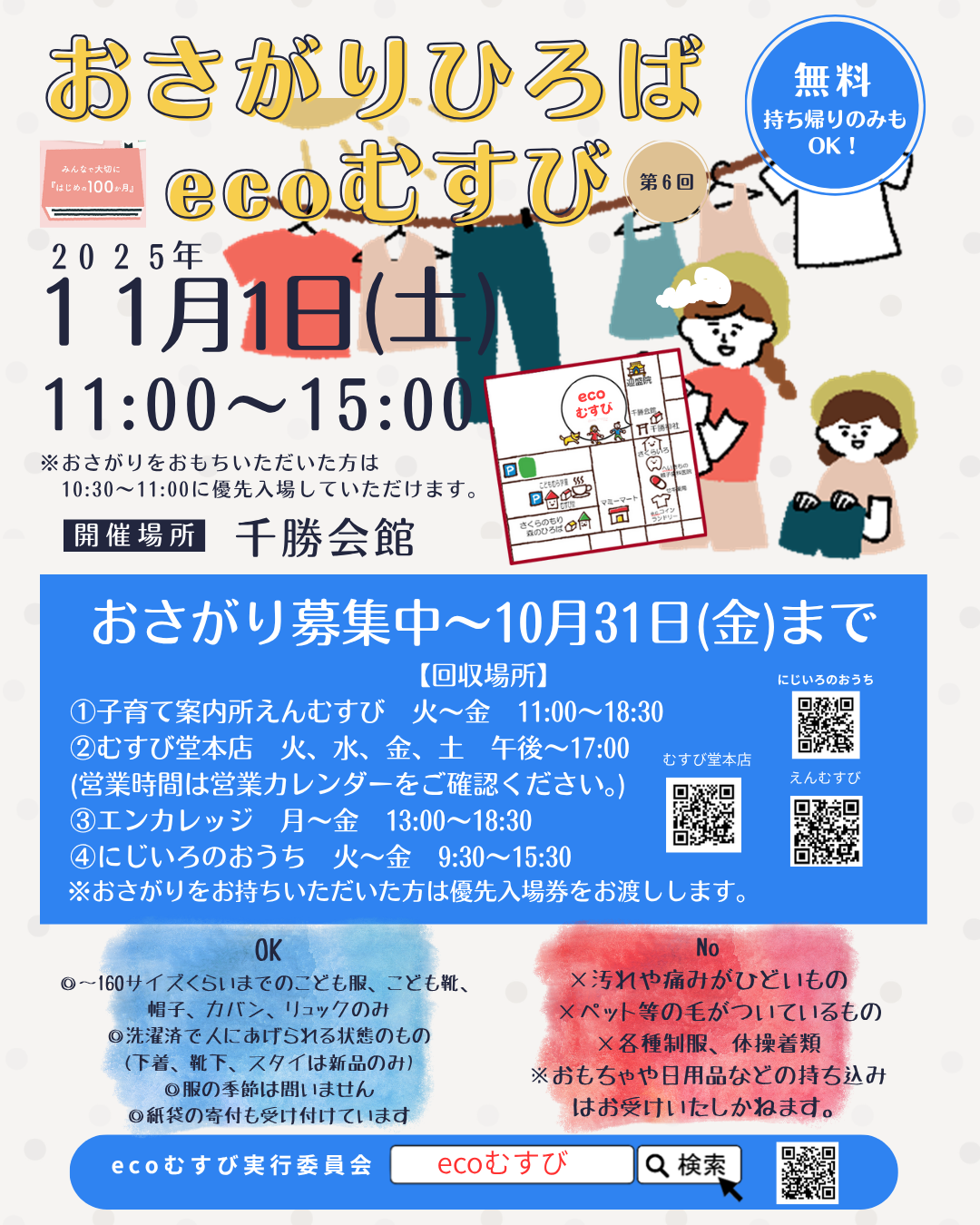 にじいろのおうちは、妊産婦から生後6、7ヶ月までの子育てについての支援を行っている場所です。こちらには~80サイズまでのお洋服が置いてあります。ご覧になりたい方は、スタッフにお声がけください♪